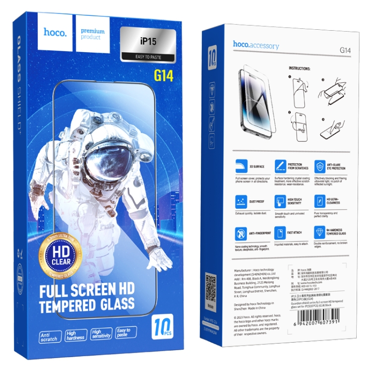 HOCO GUARDIAN SHIELD SERIES FULL-SCREEN HD TEMPERED GLASS SET(10 PCS)(G14)