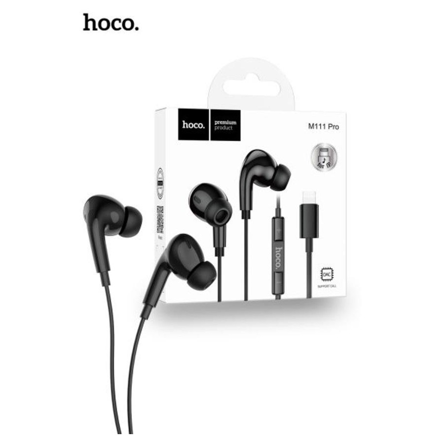 Hoco M111 Primero Digital Headset iP Material: ABS+TPE Horn: 14mm Cable length: 1.2m; weight: 13g Audio plug: Lightning Support call, support in-line control, with volume adjustment Color : Black