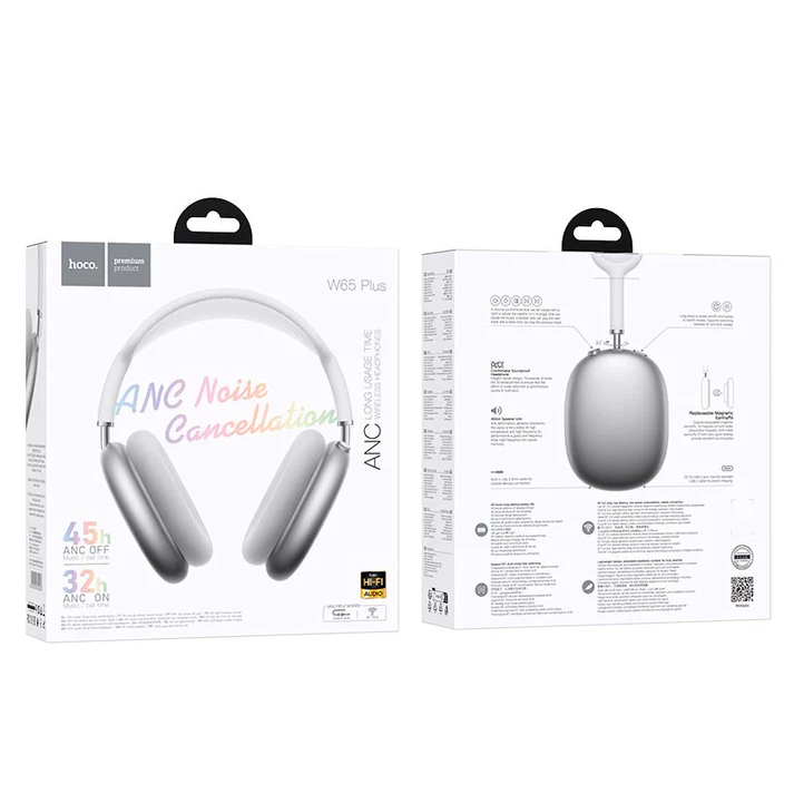 HOCO W65 PLUS HAPPY ANC BT HEADPHONE SILVER
